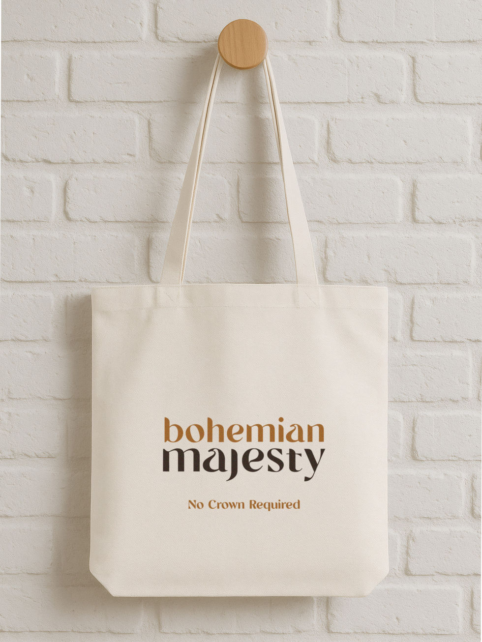 Rule softly. The Bohemian Majesty tote celebrates quiet confidence without pre-tense, grace without grandeur. “No crown required,” this tote is for women who lead with heart, humour, and effortless poise. Crafted from heavy-weight cotton canvas with reinforced straps, it’s as practical as it is poetic.