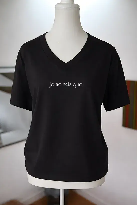 Hard to define. Easy to spot. A minimalist statement from the Fine Print Collection, the je ne sais quoi V-Neck T-Shirt celebrates that indefinable something you can’t explain but always notice. Borrowed from the French for “I don’t know what,” the phrase has long been used to describe an indefinable allure and that’s exactly the point.