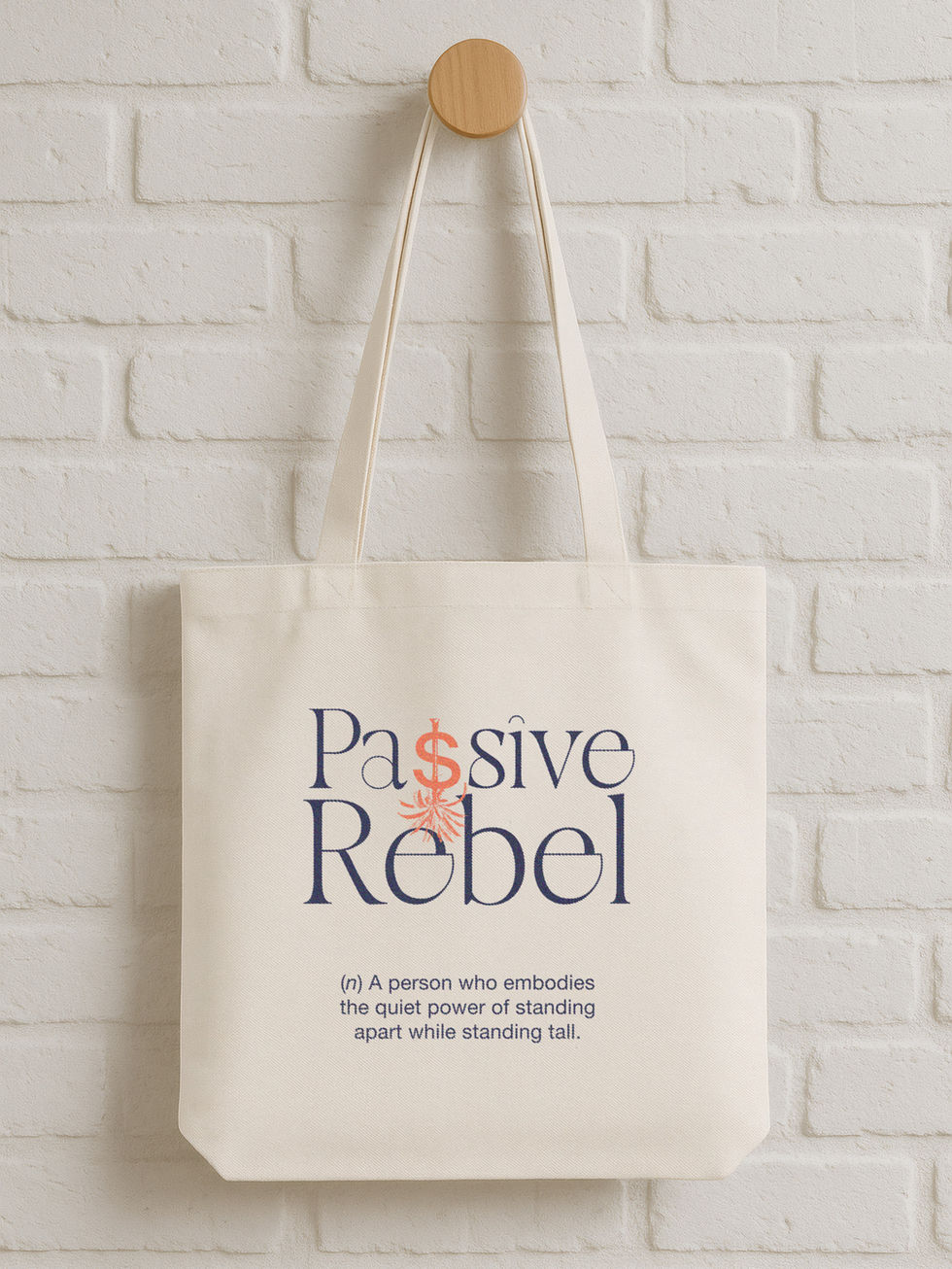 For those who lead softly but stand strong. The Passive Rebel tote carries its message with quiet confidence. Passive Rebel is a person who embodies the quiet power of standing apart while standing tall.